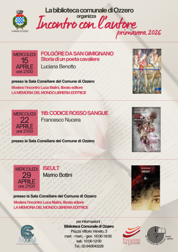 15/03/26 Nova Milanese - Luciana Benotto presenta “Folgóre da San Gimignano” presso la Sala Consiliare del Comune di Ozzero. Modera l'incontro Luca Malini.