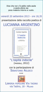 Presentazione di Lucianna Argentino con la raccolta "L'ospite indocile" (Passigli), con Sebastiano Aglieco