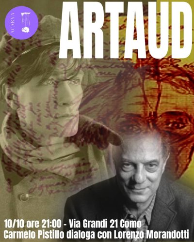 Il gruppo letterario Acarya è lieto di presentare una serata di riflessione e dialogo dedicata ad Antonin Artaud, una delle figure più emblematiche e strazianti del teatro moderno, e al recente lavoro di Carmelo Claudio Pistillo, raffinato traduttore, curatore e studioso dell’opera di Artaud.