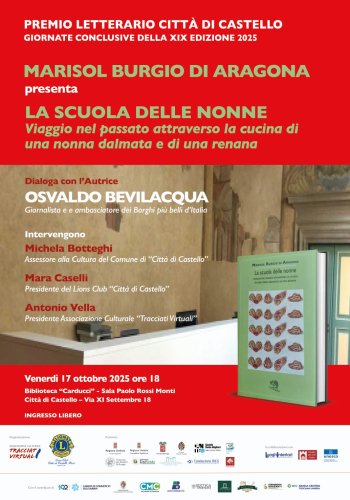Nelle giornate conclusive della XIX edizione del premio letterario Città di Castello, il 17 ottobre, alle ore 18;00, Marisol Burgio di Aragona presenterà il libro La scuola delle nonne, un viaggio nel passato attraverso la cucina di una nonna dalmana e di una renana.