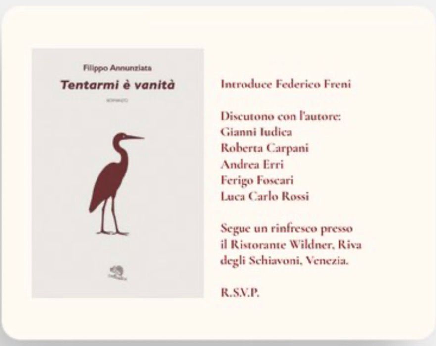 20/03/26 Venezia - Presentazione del romanzo “Tentarmi è vanità” di Filippo Annunziata