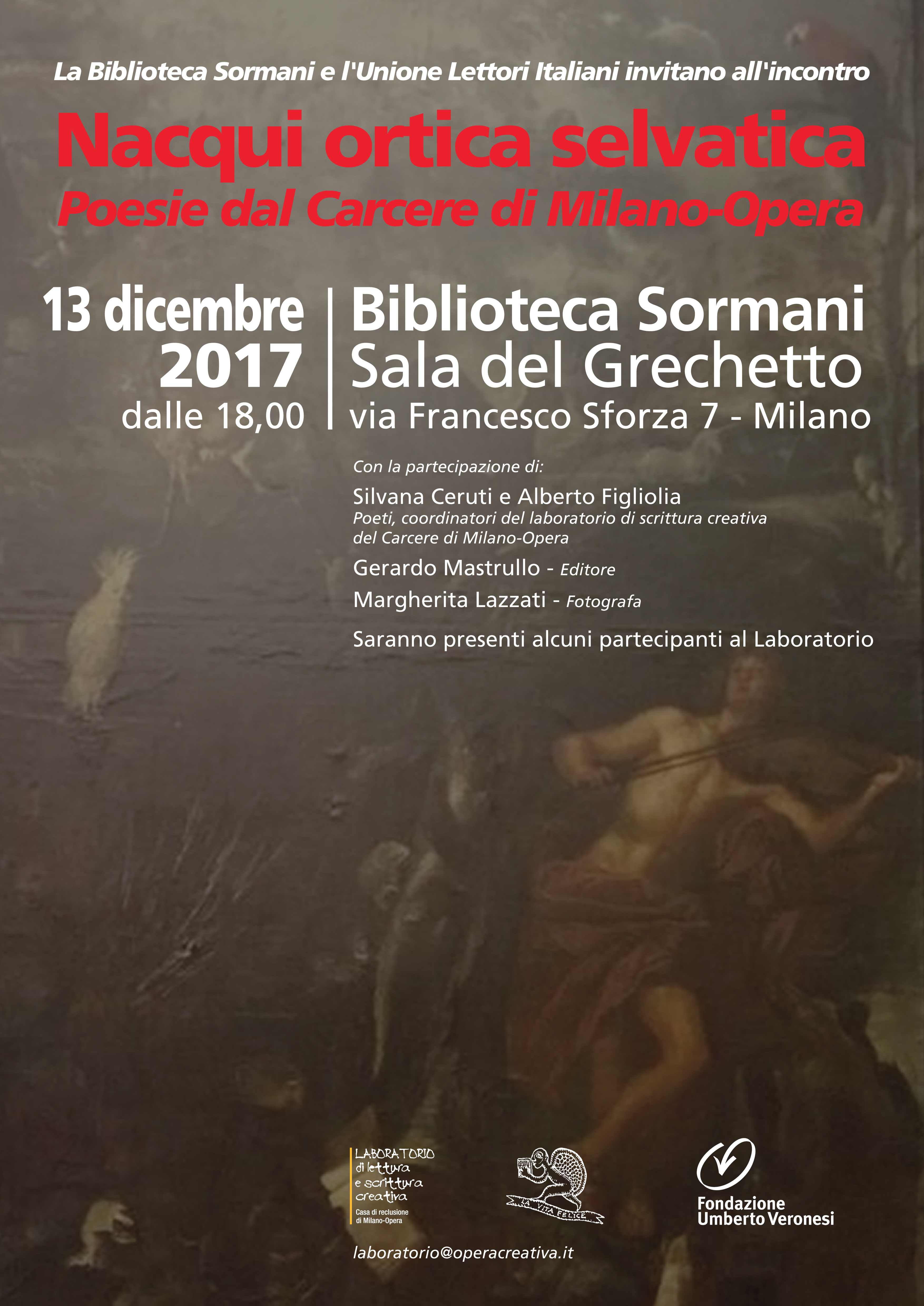 La Biblioteca Sormani e l'Unione Lettori Italiani invitano all'incontro: "Nacqui ortica selvatica. Poesie dal Carcere di Milano-Opera"